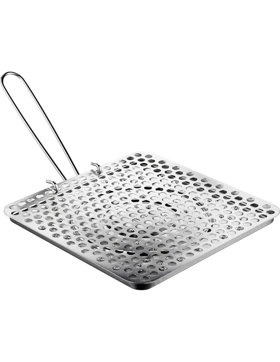 El tostador de acero estañado de IBILI es un accesorio clásico e indispensable para los amantes del desayuno tradicional que prefieren el sabor auténtico del pan tostado directamente sobre el fuego. Con unas dimensiones de 20 x 20 x 5 cm, este tostador plano permite preparar rebanadas de pan de cualquier grosor, logrando una textura crujiente por fuera y tierna por dentro que los tostadores eléctricos difícilmente pueden igualar. Su principal ventaja es la versatilidad de uso, ya que está diseñado específicamente para ser utilizado en cocinas de gas, lo que lo convierte en el compañero ideal tanto para el hogar como para llevar de acampada. El beneficio para el usuario final es un control total sobre el nivel de tostado, permitiendo ajustar la llama para obtener desde un dorado ligero hasta un tostado intenso en pocos minutos. Fabricado por IBILI, este producto destaca por su sencillez y robustez, manteniendo un estilo que ha perdurado en el tiempo gracias a su eficacia probada. Es una pieza ligera y manejable que aporta un toque de nostalgia y calidad artesanal a su cocina diaria.