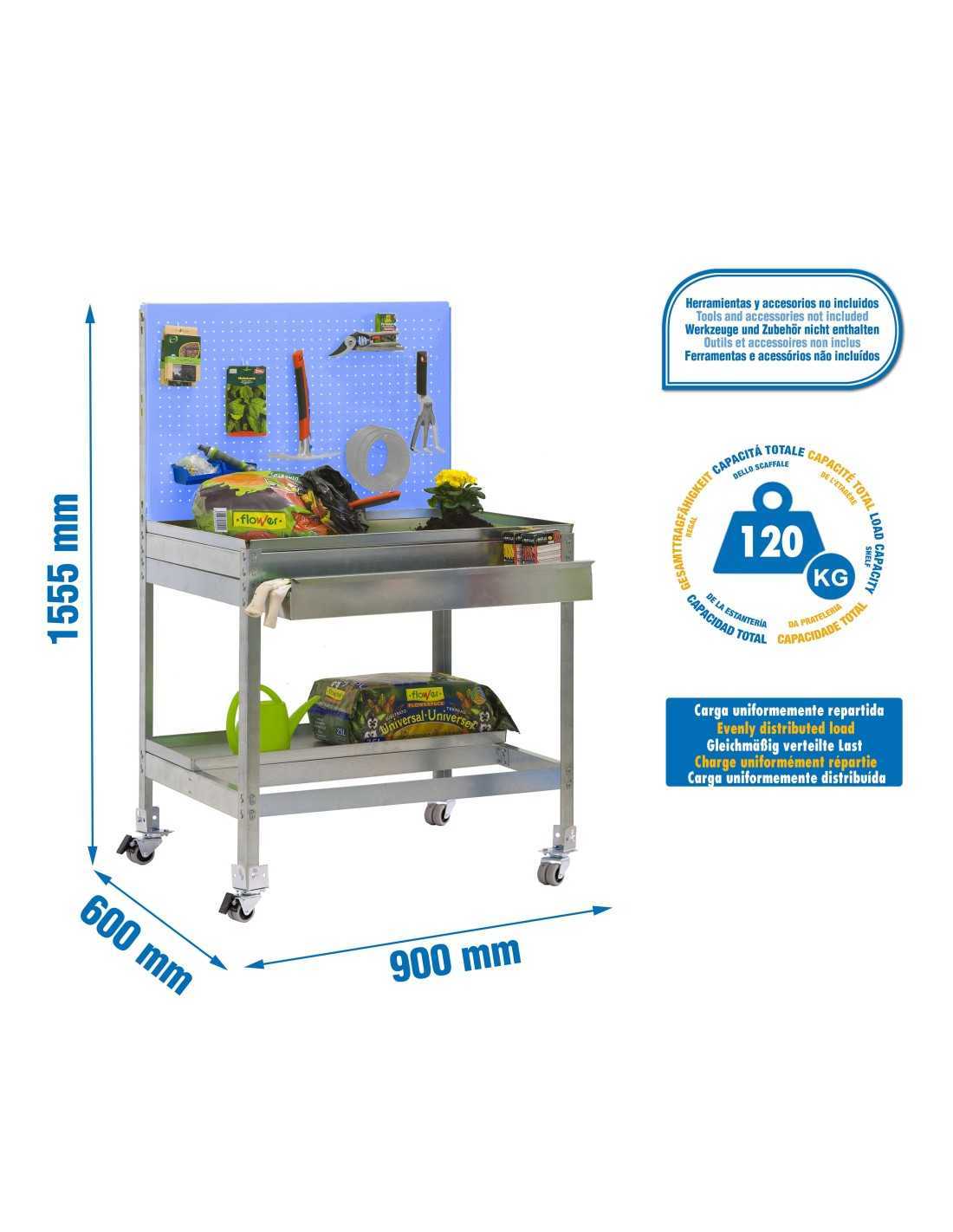 Mueble jardín SIMONGARDEN bt2 box con Ruedas 900x600 azul/galvanizada