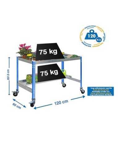 Mueble jardín SIMONGARDEN desk con Ruedas 1200x600 azul/galvanizada
