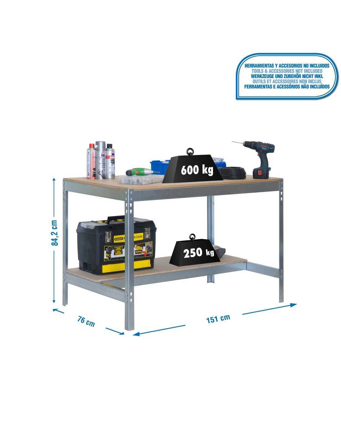 Con estructura metálica de alta resistencia y superficies amplias, esta mesa permite trabajar con total estabilidad, incluso con maquinaria, herramientas o componentes de peso. Ideal para talleres, garajes, almacenes o espacios técnicos.