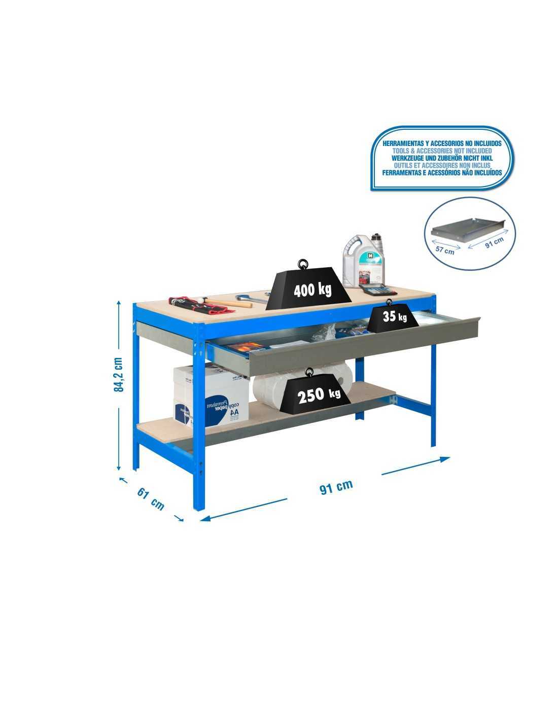 Con estructura metálica de alta resistencia y superficies amplias, esta mesa permite trabajar con total estabilidad, incluso con maquinaria, herramientas o componentes de peso. Ideal para talleres, garajes, almacenes o espacios técnicos.