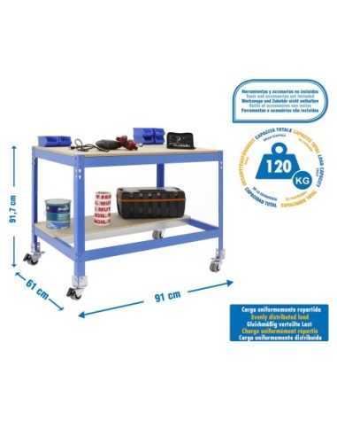 Mesa de Trabajo SIMONWORK con Ruedas BT 0 900 azul/madera
