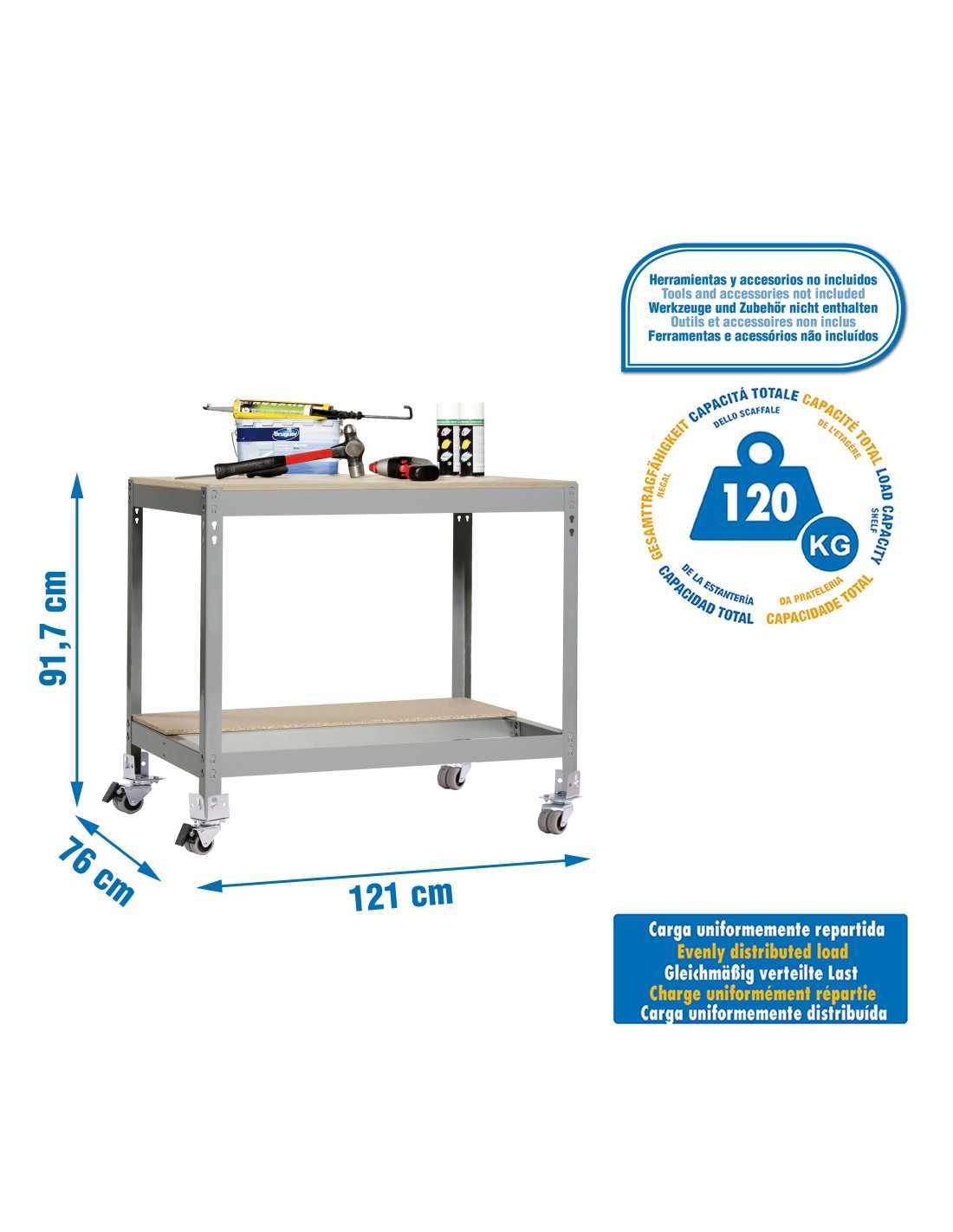 Con estructura metálica de alta resistencia y superficies amplias, esta mesa permite trabajar con total estabilidad, incluso con maquinaria, herramientas o componentes de peso. Ideal para talleres, garajes, almacenes o espacios técnicos.