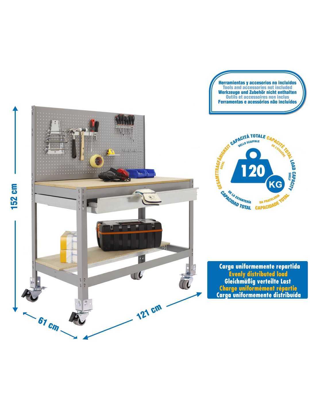 Con estructura metálica de alta resistencia y superficies amplias, esta mesa permite trabajar con total estabilidad, incluso con maquinaria, herramientas o componentes de peso. Ideal para talleres, garajes, almacenes o espacios técnicos.