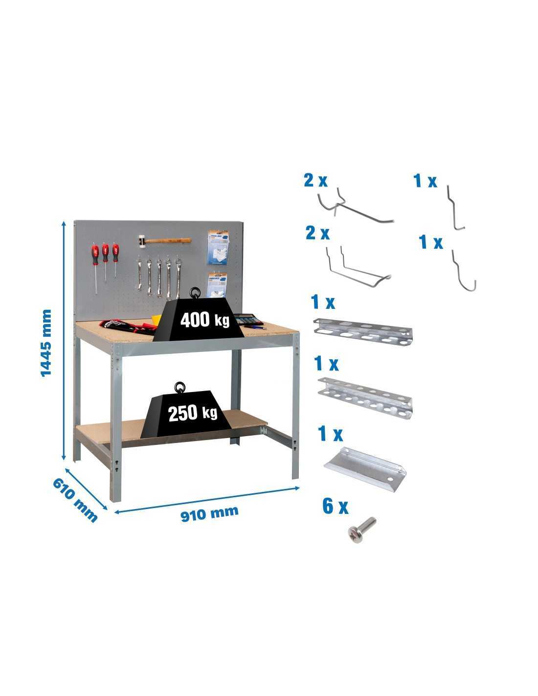 Con estructura metálica de alta resistencia y superficies amplias, esta mesa permite trabajar con total estabilidad, incluso con maquinaria, herramientas o componentes de peso. Ideal para talleres, garajes, almacenes o espacios técnicos.