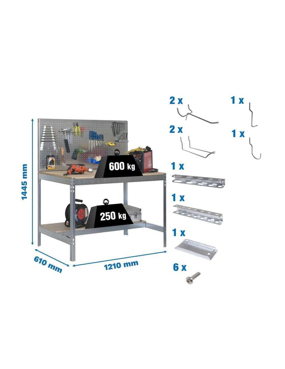 La Mesa de Trabajo SIMONWORK Pack BT 2 1200 galva/mad+ 9 accesorios forma parte de la línea profesional SIMONWORK de SimonRack. Diseñada para entornos donde la robustez y la funcionalidad son clave, esta mesa o banco de trabajo ofrece una solución duradera, resistente y práctica para zonas de montaje, mantenimiento, bricolaje o uso industrial.