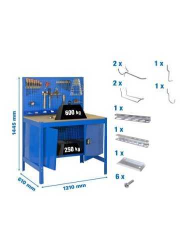 La Mesa de Trabajo SIMONWORK Pack BT 2 cabinet 1200 azul/mad+ 9 accesorios forma parte de la línea profesional SIMONWORK de SimonRack. Diseñada para entornos donde la robustez y la funcionalidad son clave, esta mesa o banco de trabajo ofrece una solución duradera, resistente y práctica para zonas de montaje, mantenimiento, bricolaje o uso industrial.