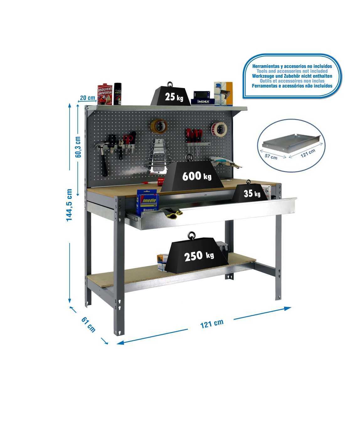 Con estructura metálica de alta resistencia y superficies amplias, esta mesa permite trabajar con total estabilidad, incluso con maquinaria, herramientas o componentes de peso. Ideal para talleres, garajes, almacenes o espacios técnicos.