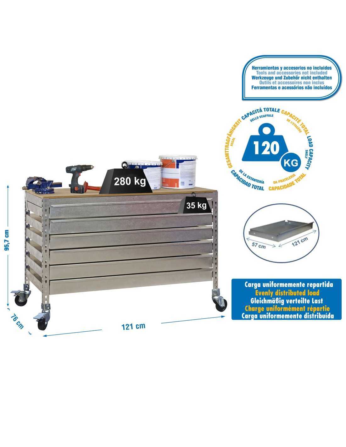 Mesa de Trabajo SIMONWORK con Ruedas bt5 box6 1200 galva/madera