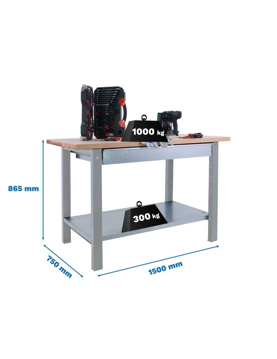 La Mesa de Trabajo SIMONWORK BT 6l pro laminate 1box 1500 gris/haya forma parte de la línea profesional SIMONWORK de SimonRack. Diseñada para entornos donde la robustez y la funcionalidad son clave, esta mesa o banco de trabajo ofrece una solución duradera, resistente y práctica para zonas de montaje, mantenimiento, bricolaje o uso industrial.