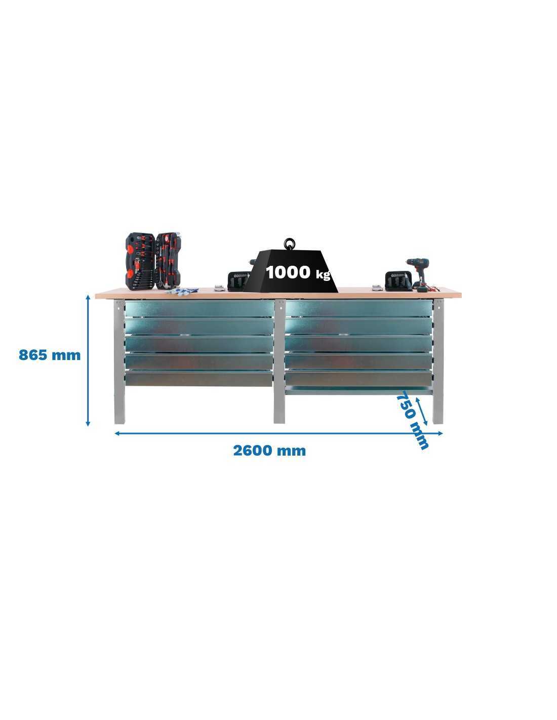 Con estructura metálica de alta resistencia y superficies amplias, esta mesa permite trabajar con total estabilidad, incluso con maquinaria, herramientas o componentes de peso. Ideal para talleres, garajes, almacenes o espacios técnicos.