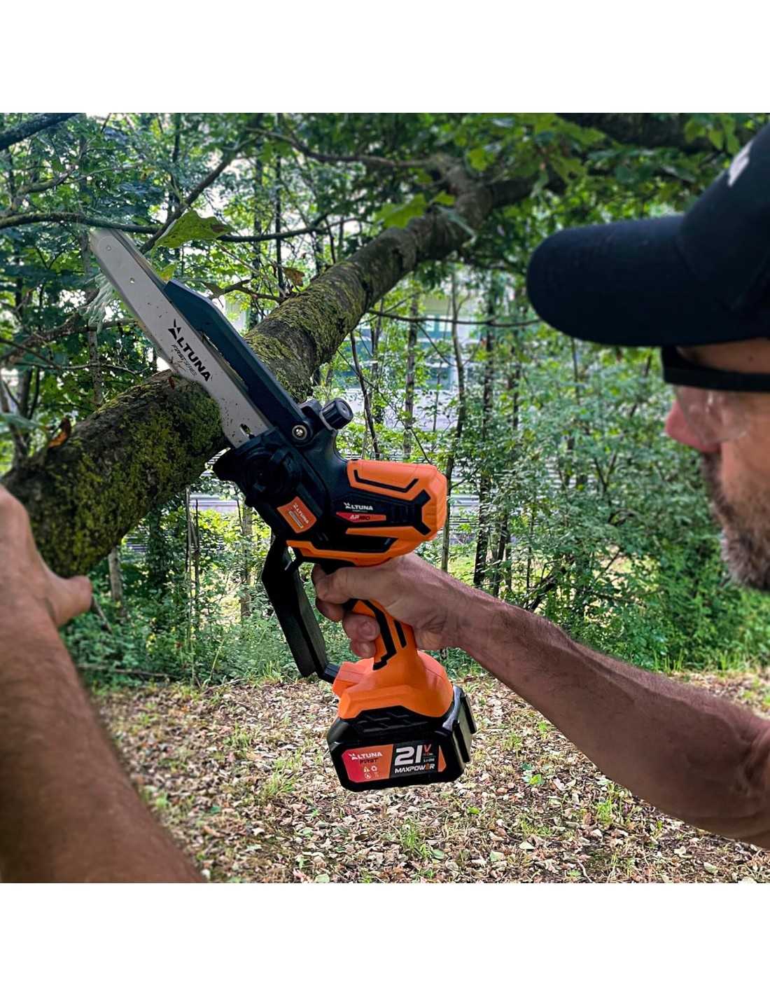 Recomendamos la motosierra a batería Altuna a jardineros, agricultores y propietarios de parcelas que busquen una herramienta potente pero manejable para el mantenimiento anual. Es especialmente útil en situaciones donde se requiere libertad de movimiento en escaleras o zonas elevadas, donde los cables o el peso de las máquinas de gasolina suponen un riesgo. Su uso es ideal para la poda de árboles frutales, corte de leña doméstica y limpieza de arbustos de gran tamaño. Gracias a su motor de 1000W y su sistema de engrase automático, es altamente recomendable para quienes desean una herramienta que trabaje duro sin exigir un mantenimiento técnico complejo. Si usted busca fiabilidad española y tecnología sin escobillas, esta motosierra es la mejor inversión para su equipo de jardín.