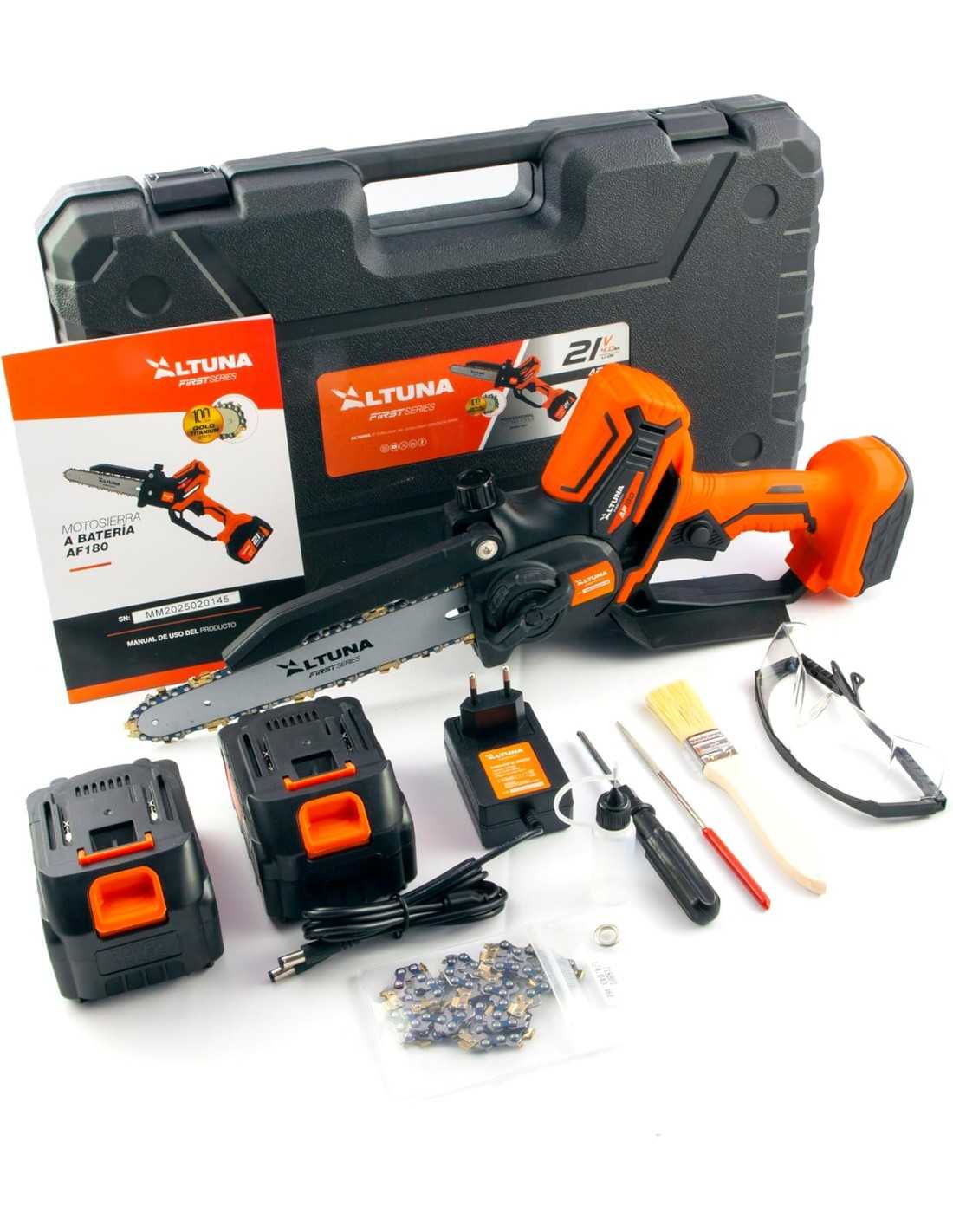 "En Ferretería CAHERSA, nos enorgullece ofrecer productos de calidad respaldados por nuestra garantía. Al comprar el Altuna - Motosierra a Batería con Cadena de Titanio en nuestra tienda, disfrutarás de un envío rápido y gratuito, así como de una atención al cliente excepcional. Haz tu compra con confianza y prepárate para disfrutar de la naturaleza con el mejor equipo. Visita nuestra página para más información: [www.ferreteriacahersa.com]".