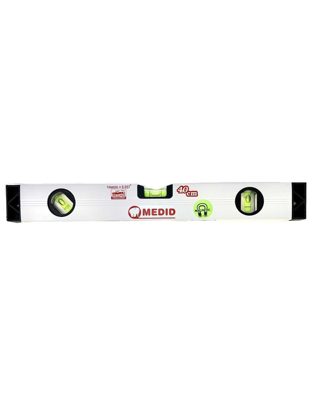 Nivel tubular de Aluminio Magnético. Nivel con 3 burbujas y con topes de plástico.