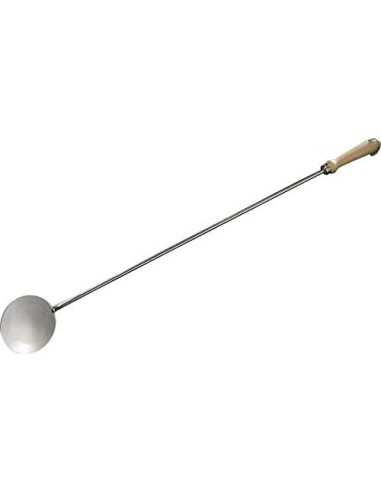 La cuchara está fabricada en **Acero Inoxidable** de alta calidad, garantizando la máxima higiene y resistencia al calor y la corrosión. Su mango de **madera de haya** ofrece un agarre firme, cómodo y que aísla del calor. Este diseño combina la tradición artesanal con la durabilidad moderna, asegurando que la espumadera La Ideal sea un utensilio práctico y duradero en tu cocina de exterior o rancho.