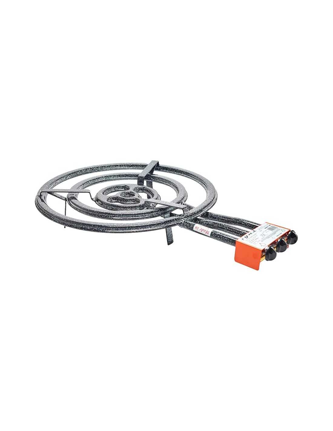 - 3 Fuegos Independientes: Permite encender y regular por separado los aros (interior, medio y exterior), adaptando la potencia exactamente al diámetro de la paellera que se esté utilizando.