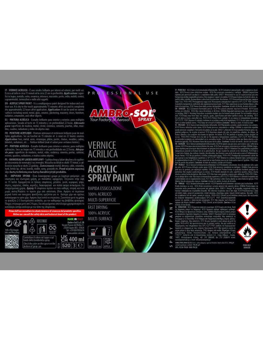 El Spray de Pintura Acrílica Ambro-Sol Gris Hierro RAL 7011 de 400 ml es la elección ideal para aficionados al bricolaje, decoradores y profesionales que buscan una pintura en spray de alta calidad y fácil aplicación. Su excelente adherencia y rápido secado lo hacen perfecto para renovar muebles de madera, pintar estructuras metálicas, dar un nuevo aspecto a objetos de plástico o cerámica, y realizar proyectos de manualidades con un acabado profesional. Utiliza este spray para tus proyectos de interior y exterior, desde la restauración de una silla hasta la personalización de objetos decorativos, obteniendo siempre resultados sorprendentes con el compromiso ecológico de Ambro-Sol.