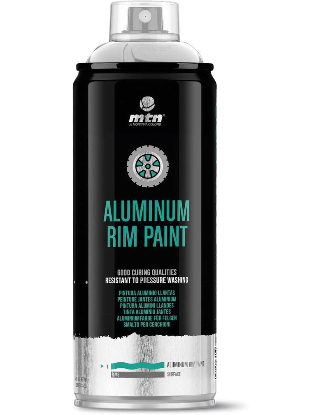 El Montana Colors MTN PRO Aluminio Llantas es un spray de 400 ml diseñado específicamente para el pintado de llantas de coche y otros objetos metálicos. Se trata de una pintura acrílica con base disolvente, formulada con resinas de altísima calidad y pigmentos inorgánicos metalizados que le confieren un acabado similar al aluminio de gran calidad.