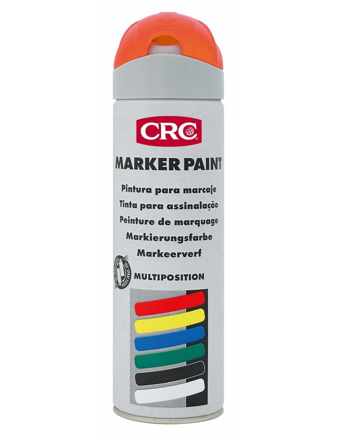 Marcaje en todo tipo de posiciones sin descolgar. CRC Markerpaint es una pintura especialmente formulada para las labores de señalización y marcaje de todo tipo de obras que se realizan al aire libre. Sus pigmentos, de una alta fluorescencia y la formulación única de este producto le hace mantener la misma fluorescencia en fondos claros y en fondos oscuros (asfalto, tierra, etc.) incluso bajo condiciones ambientales severas (humedad, frío, …). Secado rápido. No nocivo. Válvula 360º para ser aplicado en todo tipo de posiciones. Tapón protector.