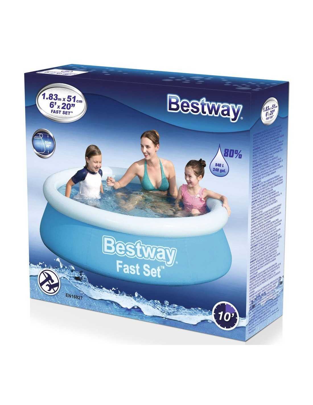 Elige calidad y eficiencia para tu piscina con Piscina BestWay 183x51cm 940L. Disponible en Ferretería CAHERSA.