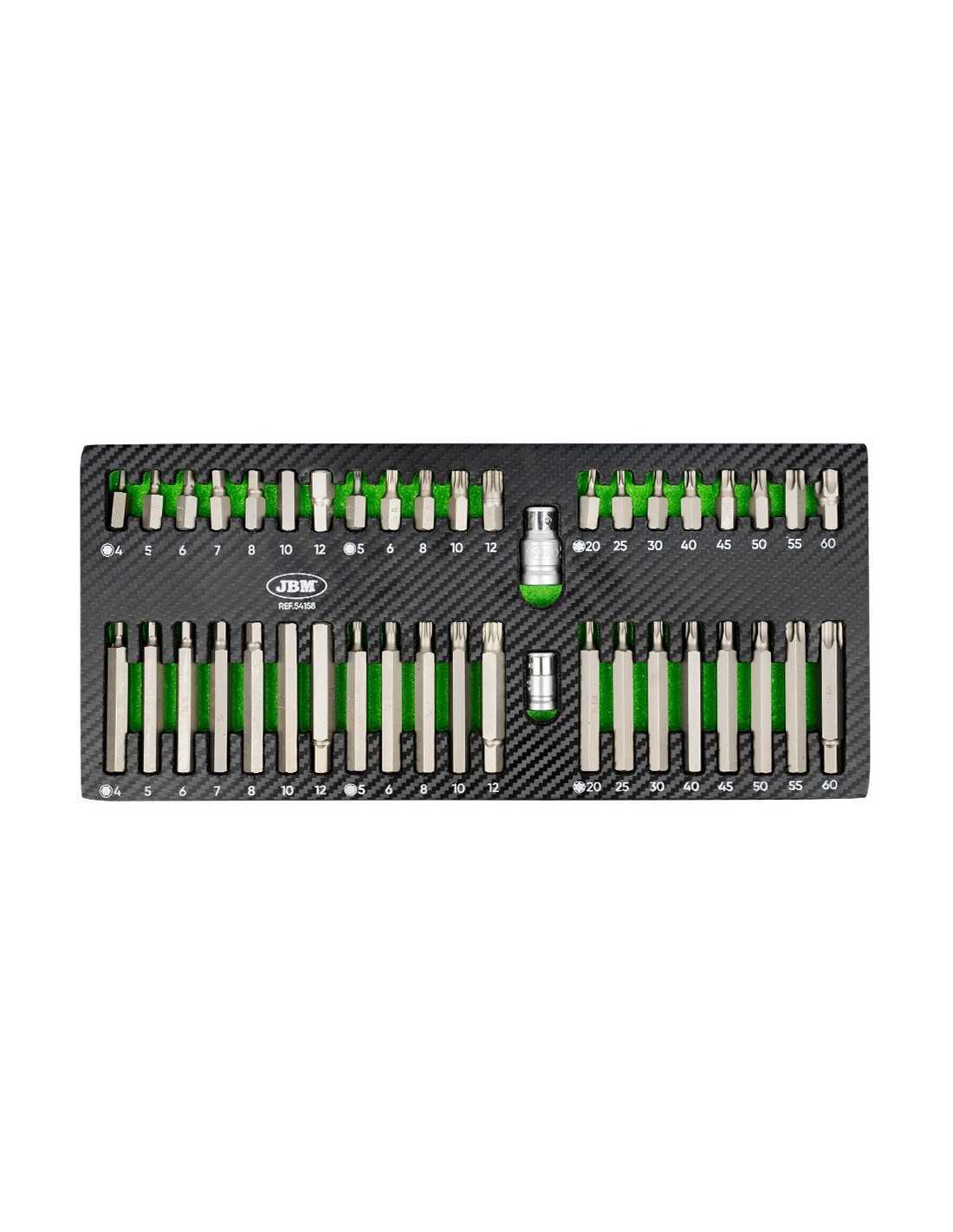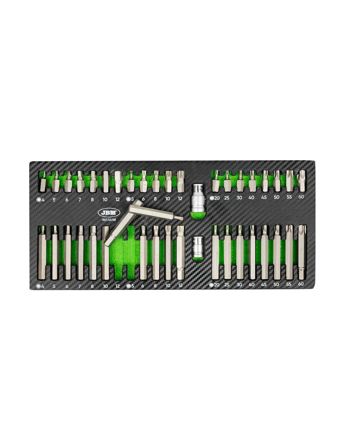 - Hexagonal: H4, H5, H6, H7, H8, H10, H12 - 12 cantos: M5, M6, M8, M10, M12 - Torx: T20, T25, T30, T40, T45, T50, T55, T60 Las puntas largas permiten acceder a tornillos en lugares profundos o de difícil acceso, manteniendo la misma variedad de tamaños que las puntas cortas.