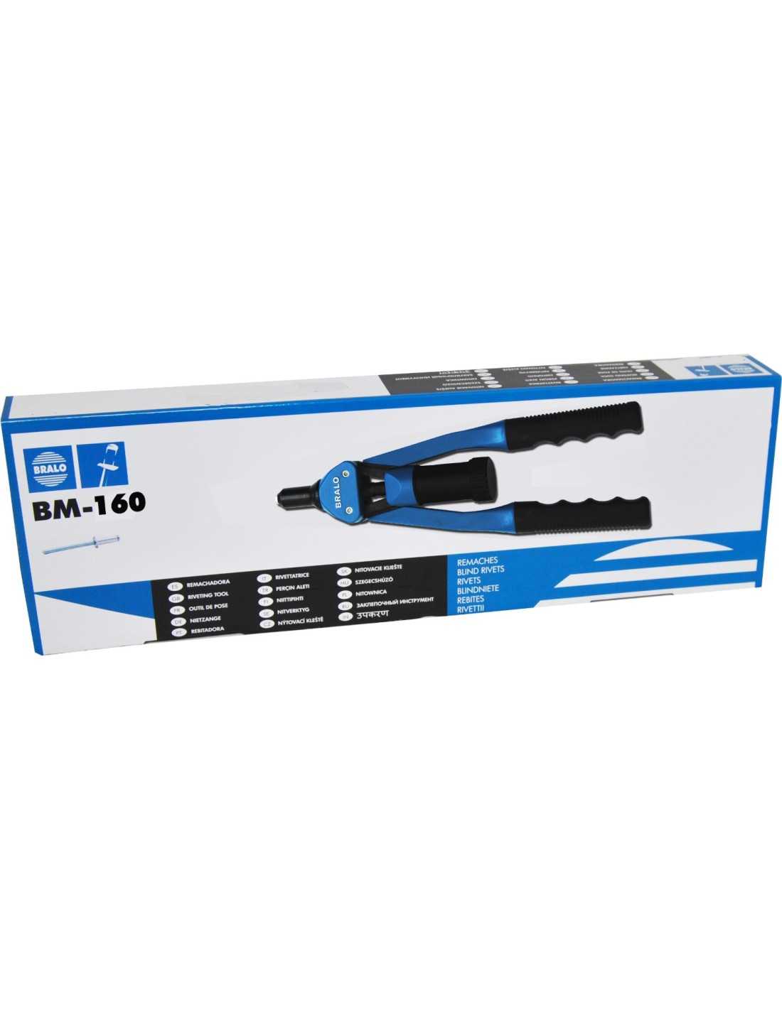 La remachadora BRALO BM-160 proporciona una gran multiplicación de fuerza gracias a su accionamiento a dos manos, permitiendo cierres uniformes con menor esfuerzo del operario. Es una herramienta robusta y fiable para talleres y trabajos de montaje profesional donde se exige repetibilidad y un acabado de calidad.