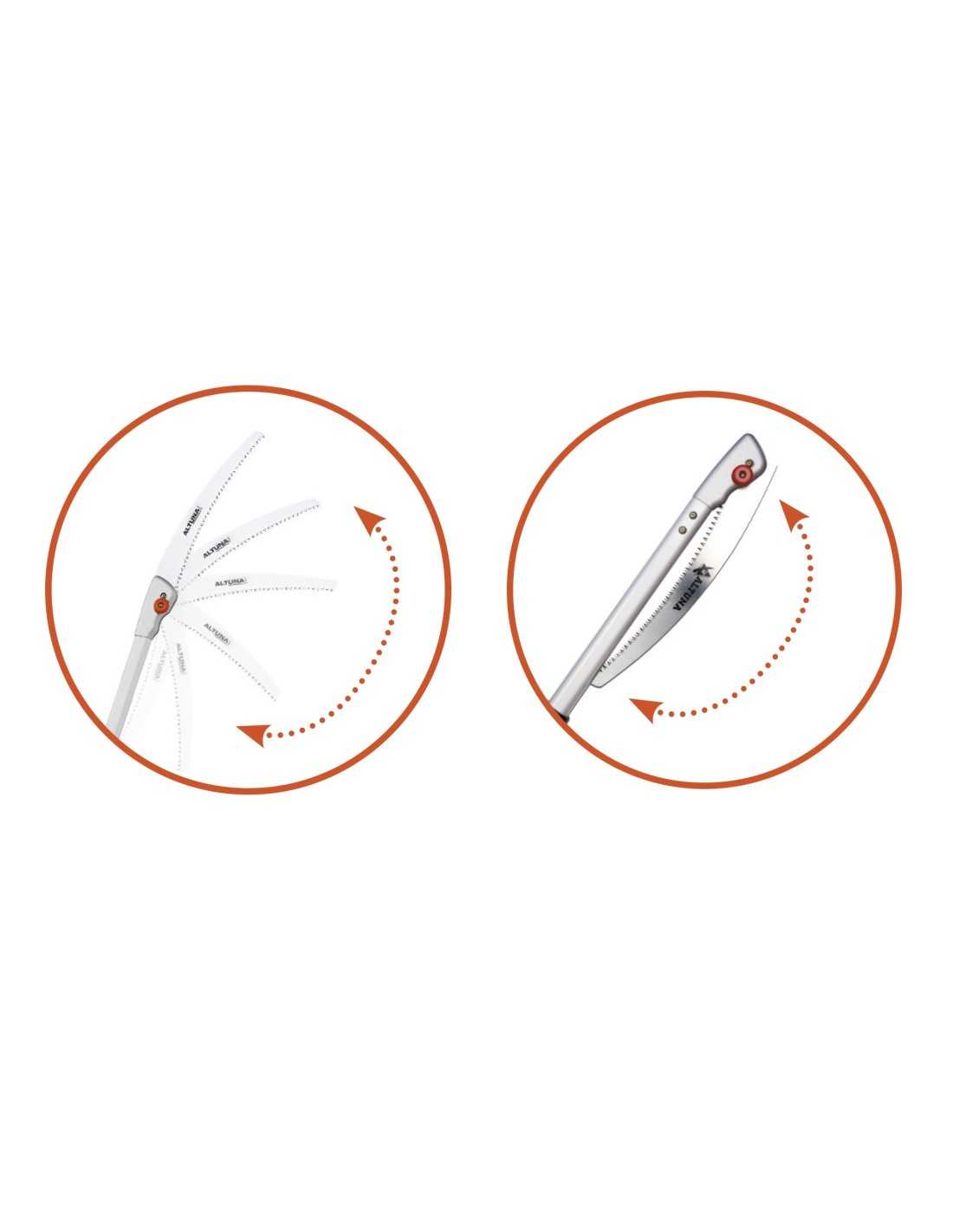 El mango ergonómico reduce la fatiga y asegura un agarre firme, tanto con guantes como sin ellos. En versiones con pértiga, el sistema de fijación estable permite trabajar a altura sin escalera, incrementando la seguridad en las labores de poda.