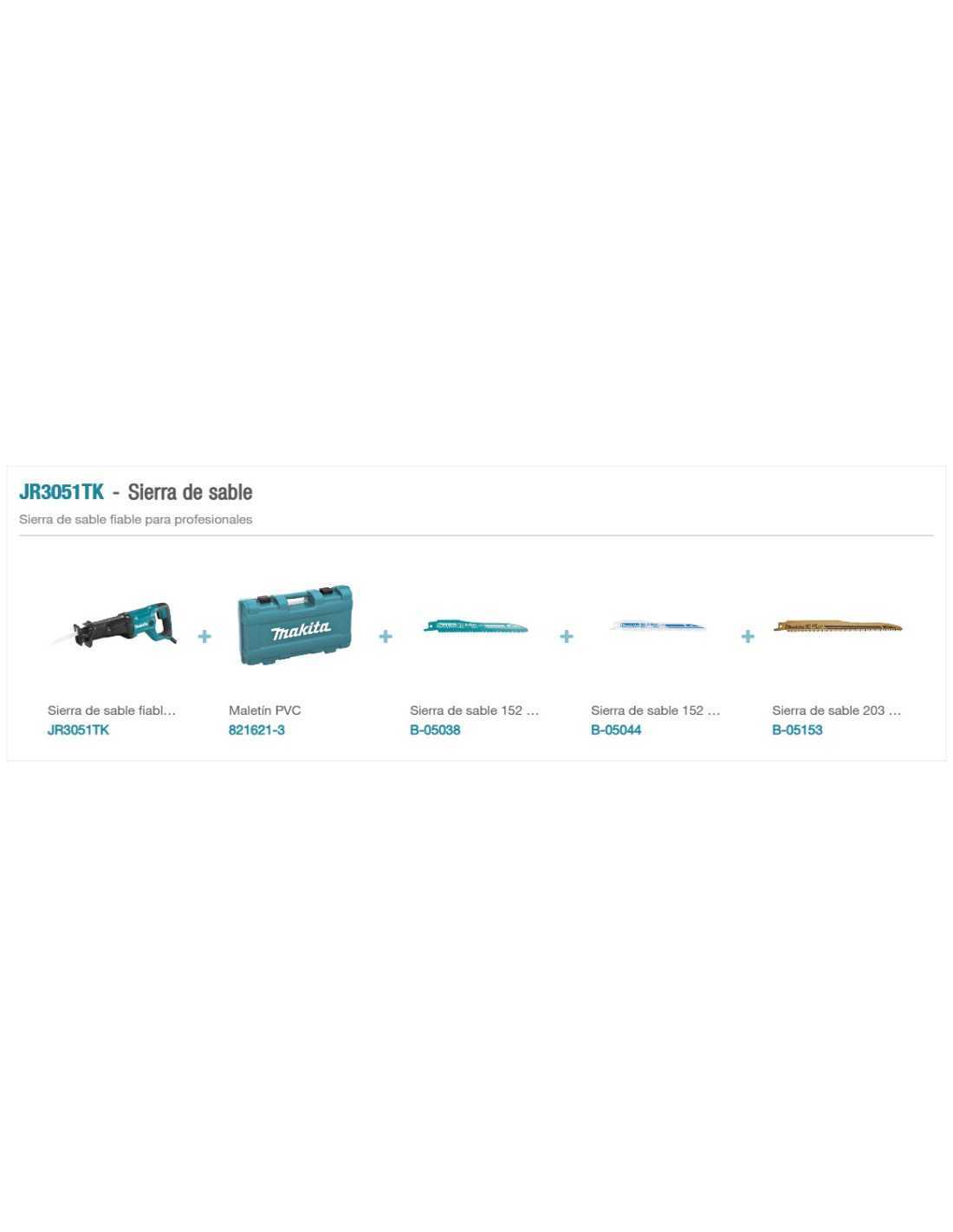 La Sierra de Sable Makita JR3051TK tiene una velocidad sin carga de 0 - 3000 min?¹. La longitud de la carrera es de 30mm. La capacidad máxima de corte en tubo es de 130mm y en madera es de 255mm. El peso neto de la herramienta es de 3.2 - 3.3 kg.
