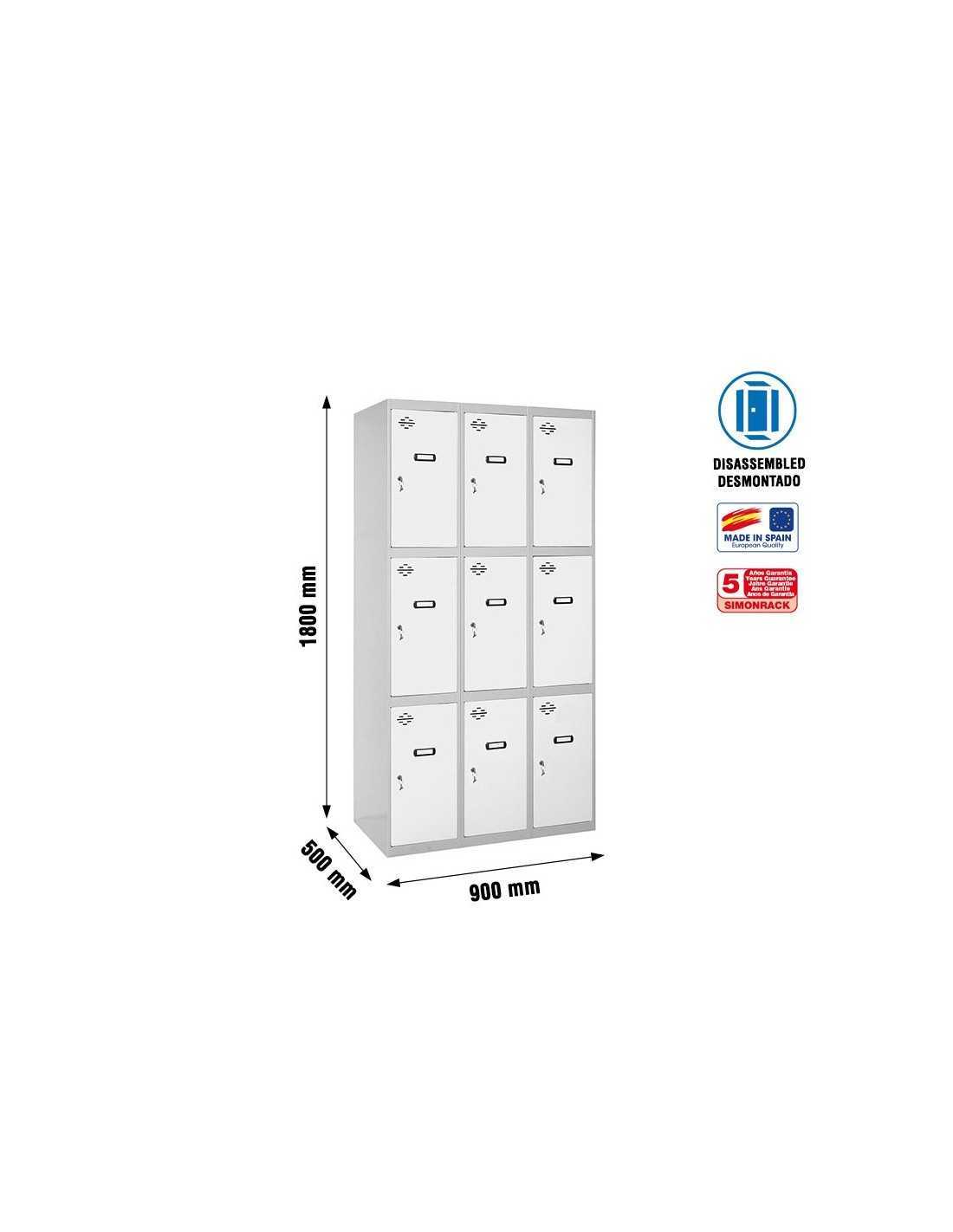 Especificaciones técnicas de la Taquilla Consigna SIMONRACK Simonlocker desm. 3 puertas 3/9 300 (900) gr/bl