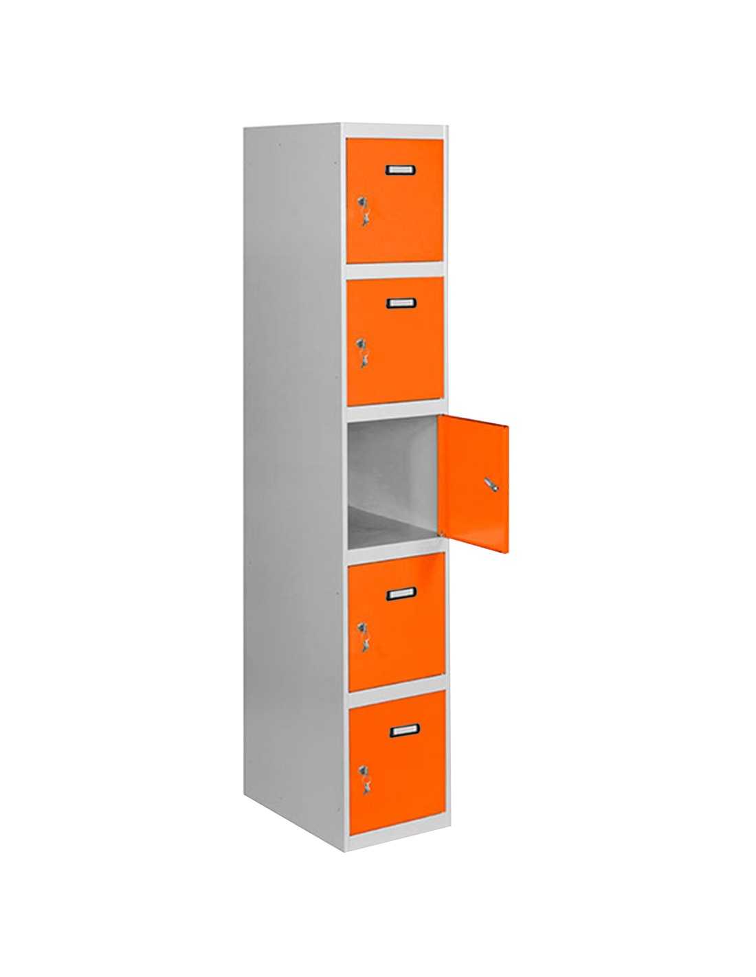 Elige Armario Taquilla SIMON LOCKER Profesional dism.5 puerta 1/5 300 in Gris/Naranja y ofrece a tus usuarios una solución de almacenaje personal que combina durabilidad, seguridad y estética.