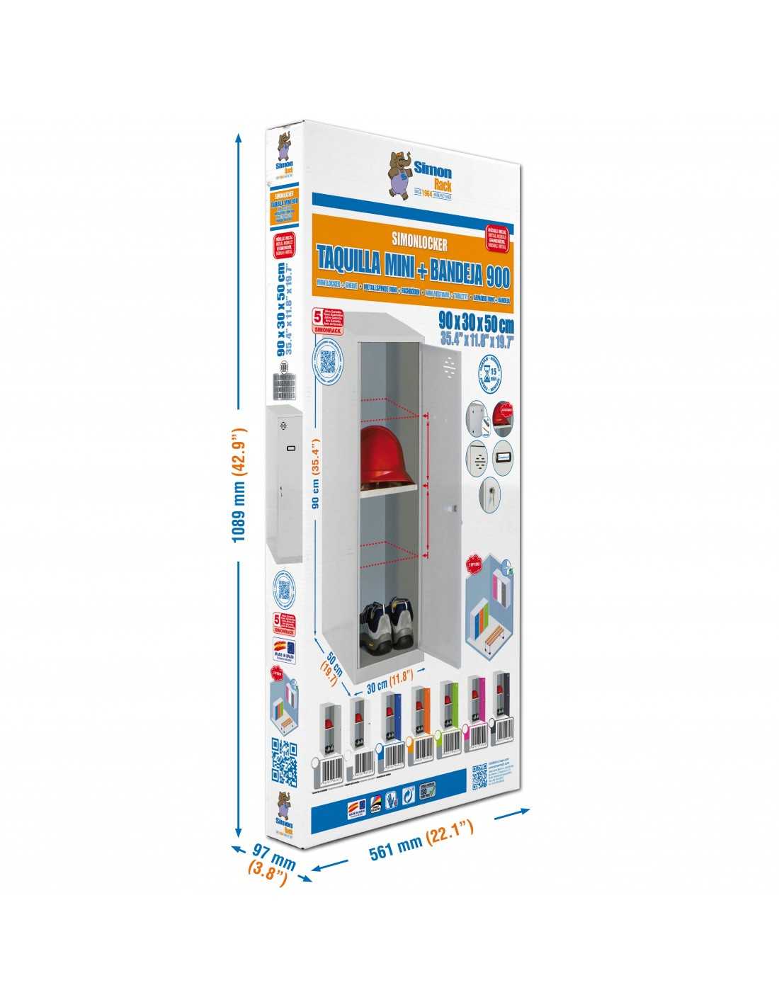 Especificaciones técnicas de la Armario Taquilla SIMON LOCKER Monobloque Mini + BAN. 915x300x500 mm GR/AN