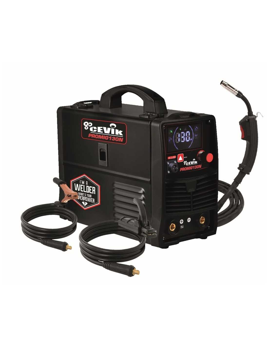 El Soldador Inverter CEVIK PRO 3EN1 HILO S/GAS-TIG-MMA 130 AMPERIOS CE-PROMIG130N se presenta como una solución integral para profesionales y aficionados al bricolaje que buscan un equipo de soldadura versátil, eficiente y de alto rendimiento. Este soldador multifunción combina tres procesos de soldadura en una sola máquina compacta y portátil: Hilo sin Gas (FCAW), MMA (Electrodo) y TIG-LIFT-DC (Tig por raspado), abarcando un amplio espectro de aplicaciones y materiales.