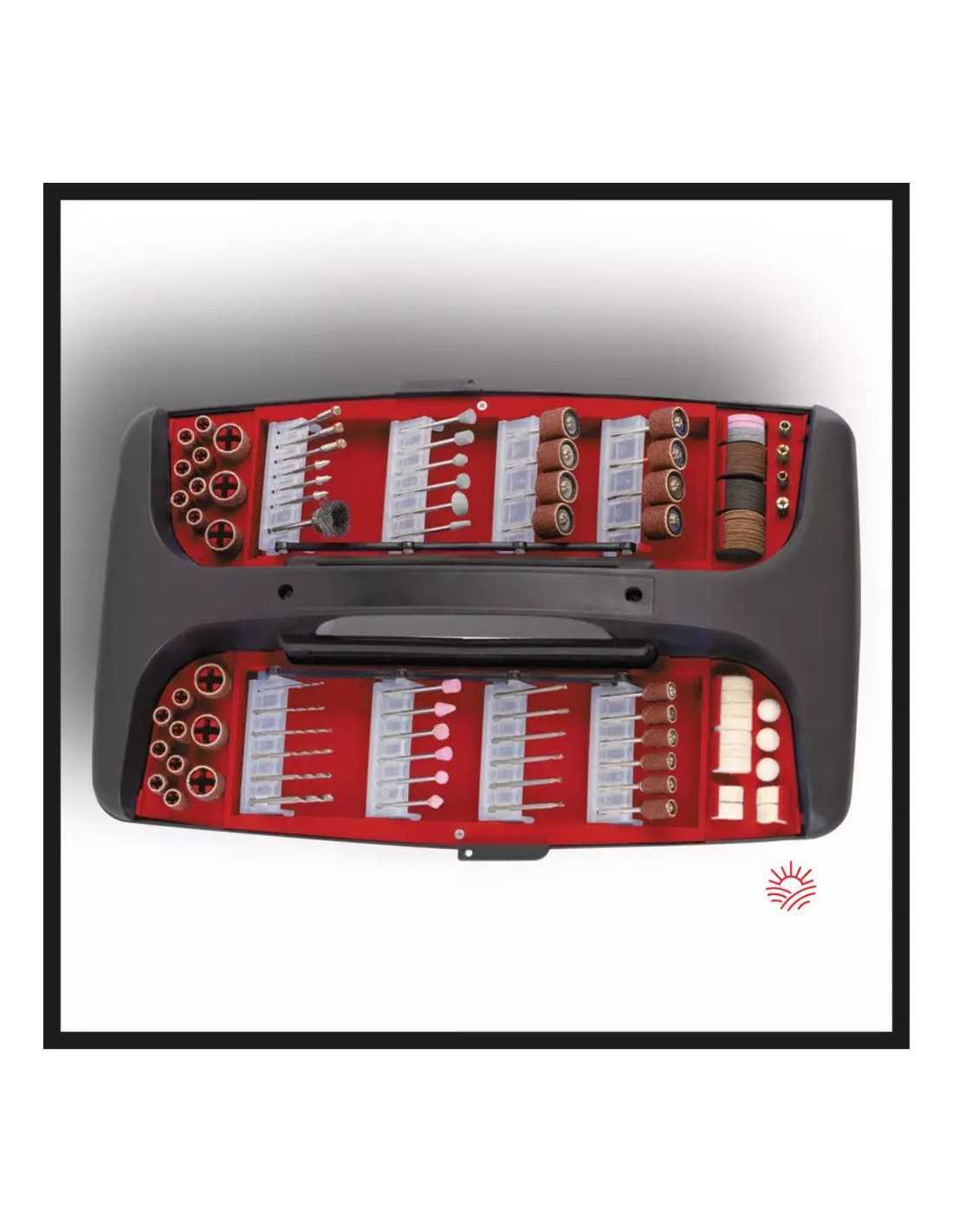 - Amplia variedad de accesorios: Más de 189 accesorios que incluyen discos de corte, lijado, brocas y más.