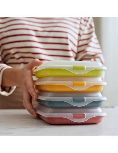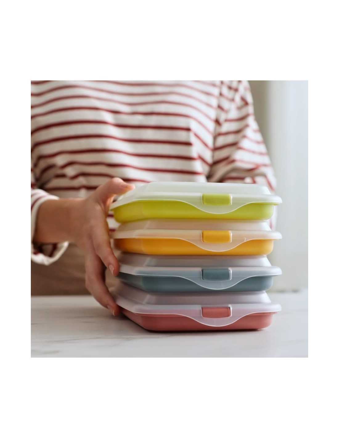 - Sistema de Apilado Inteligente: La forma y el grosor de 3,3 cm han sido optimizados para permitir que los 4 tapers se apilen perfectamente, maximizando el espacio vertical en los estantes de su frigorífico.