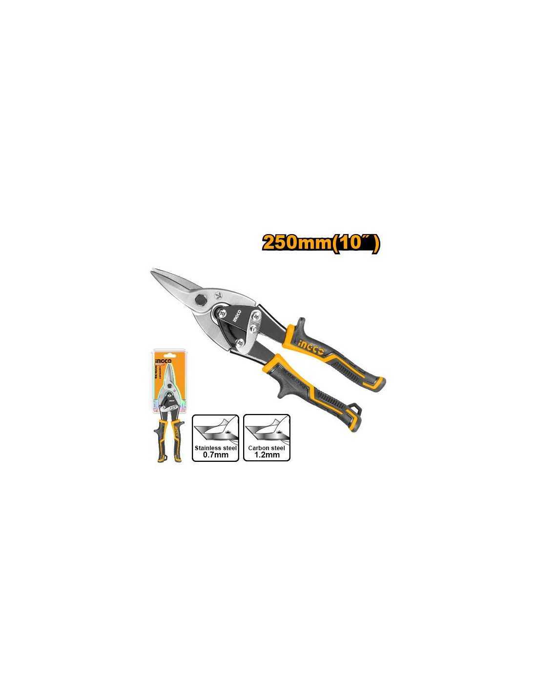 La tijera chapa centrada INGCO HTSN0110S es una herramienta indispensable para trabajos que requieran cortes precisos en chapa de acero al carbono o acero inoxidable. Su capacidad de corte y mango antideslizante la convierten en una opción fiable y versátil para diversas aplicaciones.