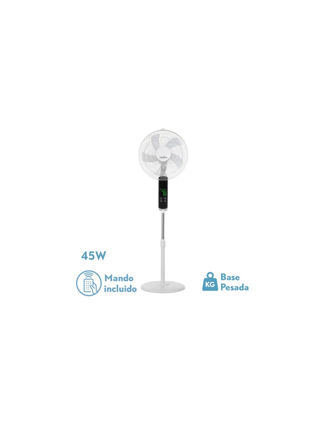 Ventilador de Pie de la serie RODIUM en color Negro con cinco aspas y tres velocidades. Realizado en metal y policarbonato. De diseño muy moderno y elegante, pudiendo tomar parte de la decoración. Tiene 45 watios de potencia, TACTIL, con pantalla digital, MANDO A DISTANCIA incluido y TEMPORIZADOR, pudiendo programarlo para que se apague automáticamente de 1 a 7,5 horas, aportando un gran ahorro de energía. Con dos posiciones fijo y rotatorio, pudiendo difundir el aire rápidamente por toda la estancia. Tiene una medida, regulables en altura, de 113<,139x43x40 centímetros. Modelo disponible en color negro y blanco.