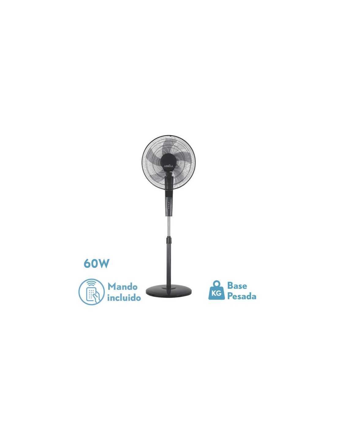 Ventilador de Pie RAYO en color Gris/Negro con cinco aspas y tres velocidades. Realizado en metal y policarbonato. De diseño moderno, 60 watios de potencia, viene con MANDO A DISTANCIA incluido y TEMPORIZADOR, pudiendo programarlo para que se apague automáticamente desde los 30 minutos hasta las 7,5 horas, aportando un gran ahorro de energía. Con dos posiciones, fijo y rotatorio y tres modos de aire: natural, sueño y normal, pudiendo así ventilar dependiendo de la necesidad que requiera la estancia. Tiene una medida, regulable en altura, de 115<,130x43x40 centímetros. Modelo disponible en color burdeos/negro y gris/negro.