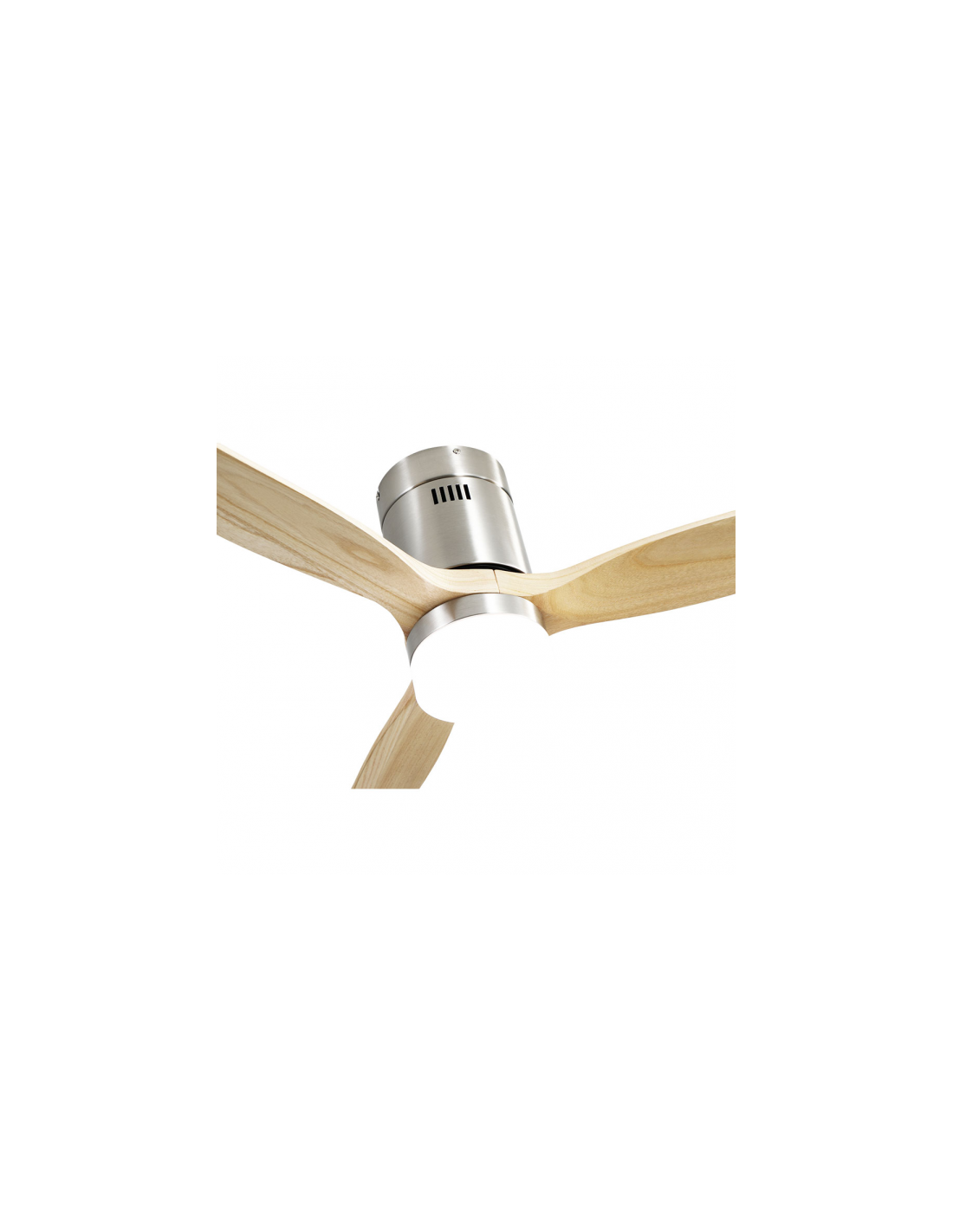 Ventilador AGUILON LED realizado en metal, madera y cristal, en color NIQUEL con tres aspas de color Haya. Motor DC. Tiene seis velocidades ajustables. Tecnología LED incorporada con una potencia de 20W, con 3 TEMPERATURAS SELECCIONABLES DE LUZ (3000-4000-6000K) y 2450 lúmenes. Su medida es de 30,5X132X132 centímetros. Control de aire verano o invierno. Mando a distancia INCLUIDO con REGULADOR DE INTENSIDAD, MEMORIA DE COLOR incorporada y TEMPORIZADOR 0,5<,2 H. Modelo también disponible en Cuero/Roble, Marrón/Roble y en Blanco.