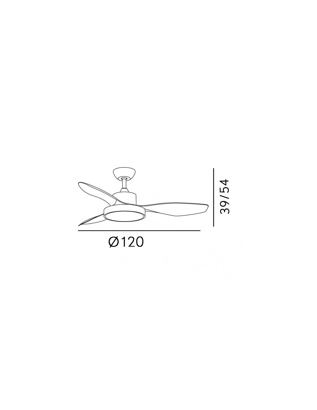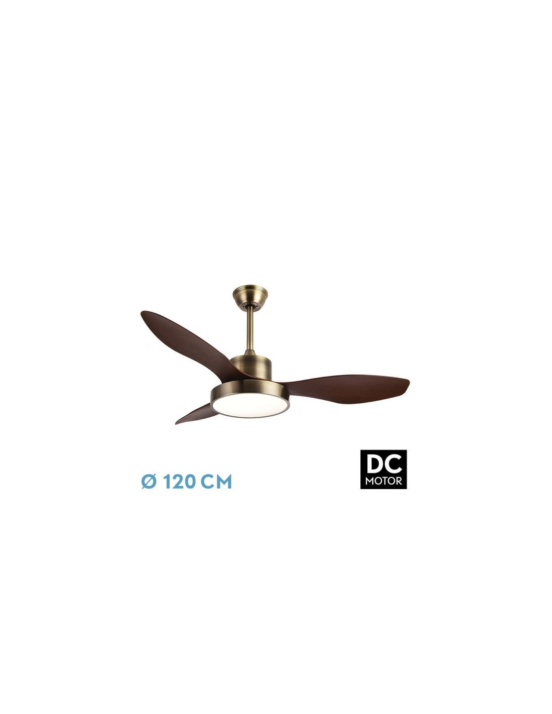 Ventilador HayaTE realizado en metal, ABS y policarbonato, en color CUERO con TRES aspas de color ROBLE. Motor DC, tiene seis velocidades ajustables. Tecnología LED incorporada con una potencia de 48W, con 3 TEMPERATURAS DE LUZ( 3000-4000-6000K) y 4080 lúmenes. Su medida es de 39/54X120X120 centímetros, viene con DOS MEDIDAS DE TIJA, lo que permite adaptarlo para distintas alturas de techo. Control de aire verano o invierno. Mando a distancia INCLUIDO con MEMORIA DE COLOR incorporada y TEMPORIZADOR 1/2/4 H. Modelo también disponible en Níquel-Haya, Marrón y Blanco.