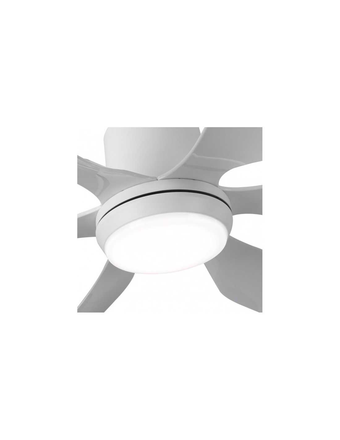 - 6 aspas blancas: diseño moderno que favorece una mejor distribución del aire.