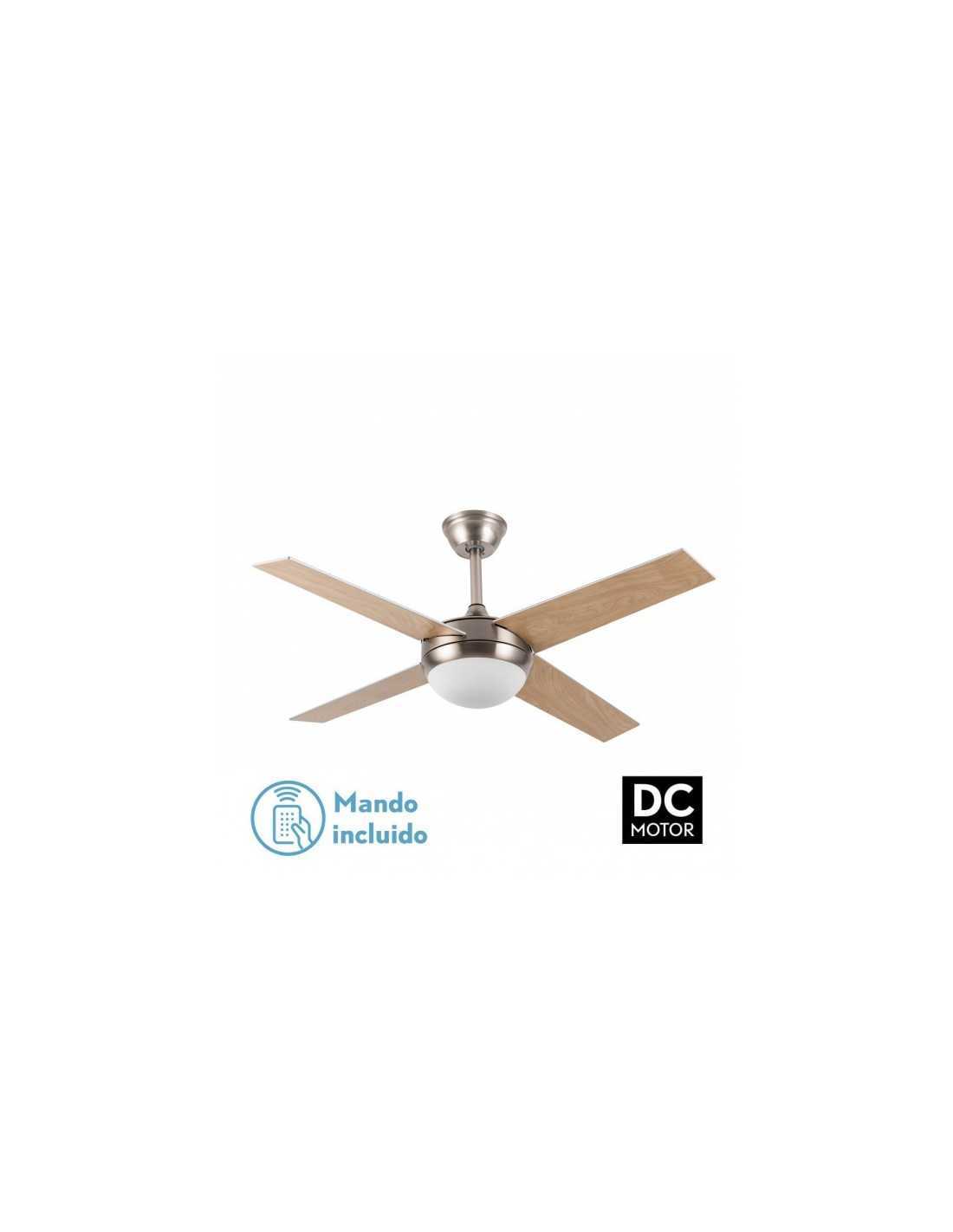 Ventilador DC CIRO 2XE27 NIQUEL 4 ASP.REV. PLATA/Haya