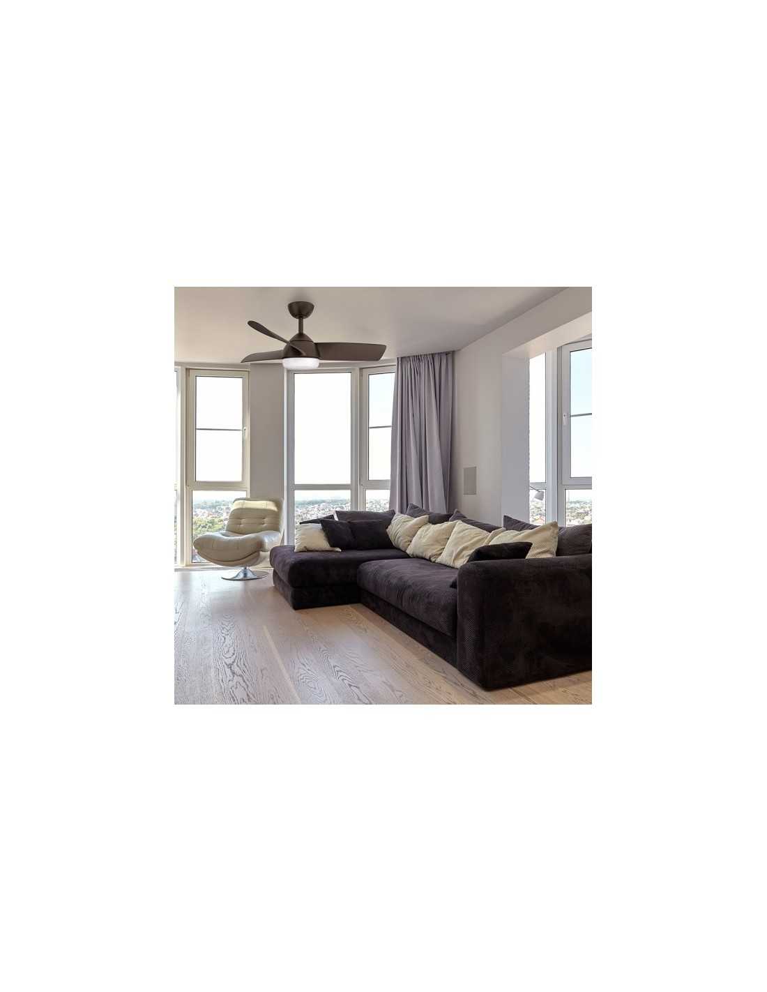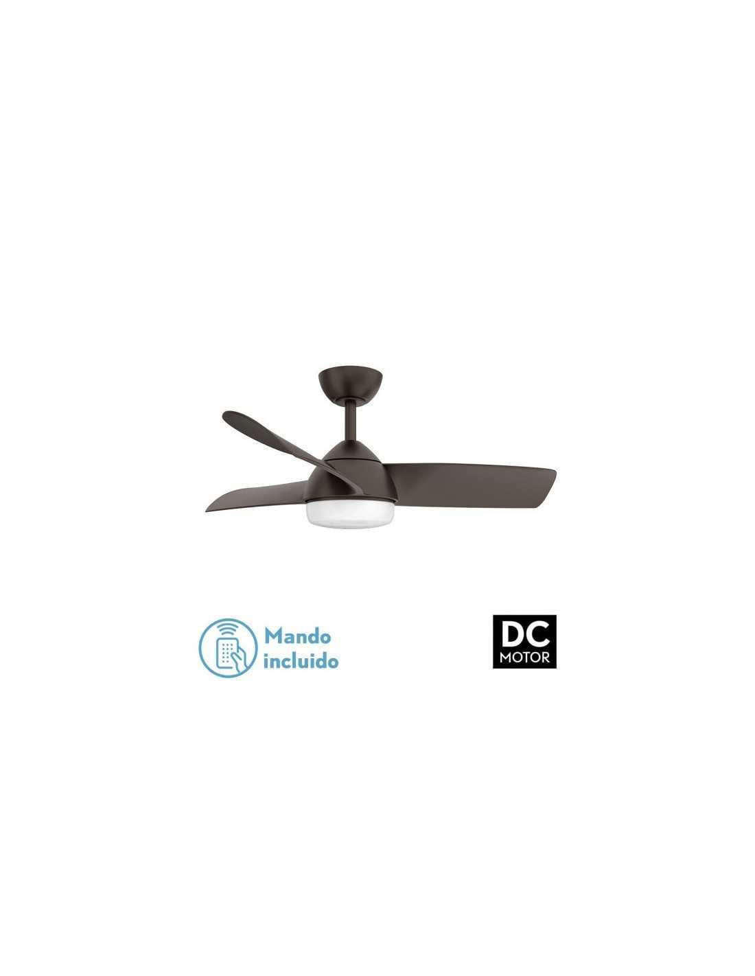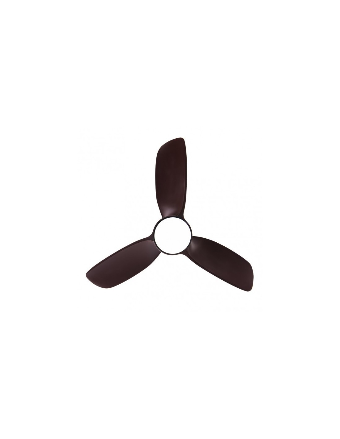 Ventilador DC serie Haur de color MARRÓN con 3 aspas. Realizado de metal, MDF y policarbonato. Tiene una medida de 38/50,5x107x107 centímetros. Tecnología LED integrada con una potencia de 24W, con COLOR DE LUZ SELECCIONABLE EN 3 TEMPERATURAS (3000-4000-6000K) y 2950 lúmenes. Contiene control remoto con 6 velocidades diferentes, memoria de color, modo de verano/invierno y temporizador de 1 hasta 8 horas. Incluye dos tijas de 12,5 y 25 centímetros. Modelo también disponible en color Blanco y en color Plata.