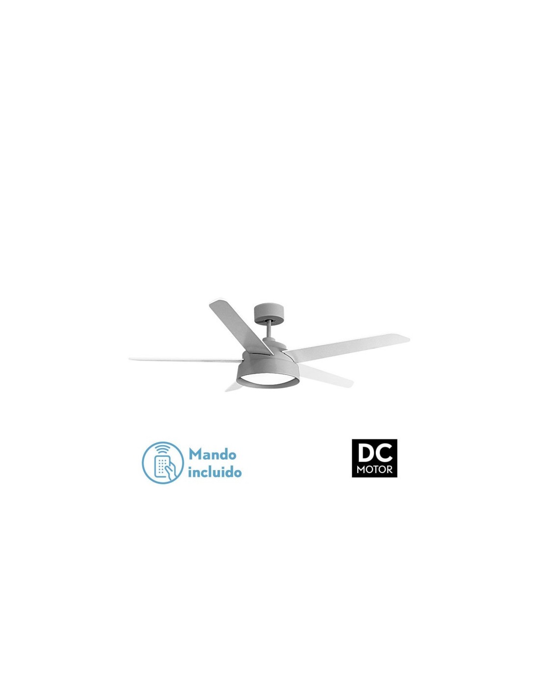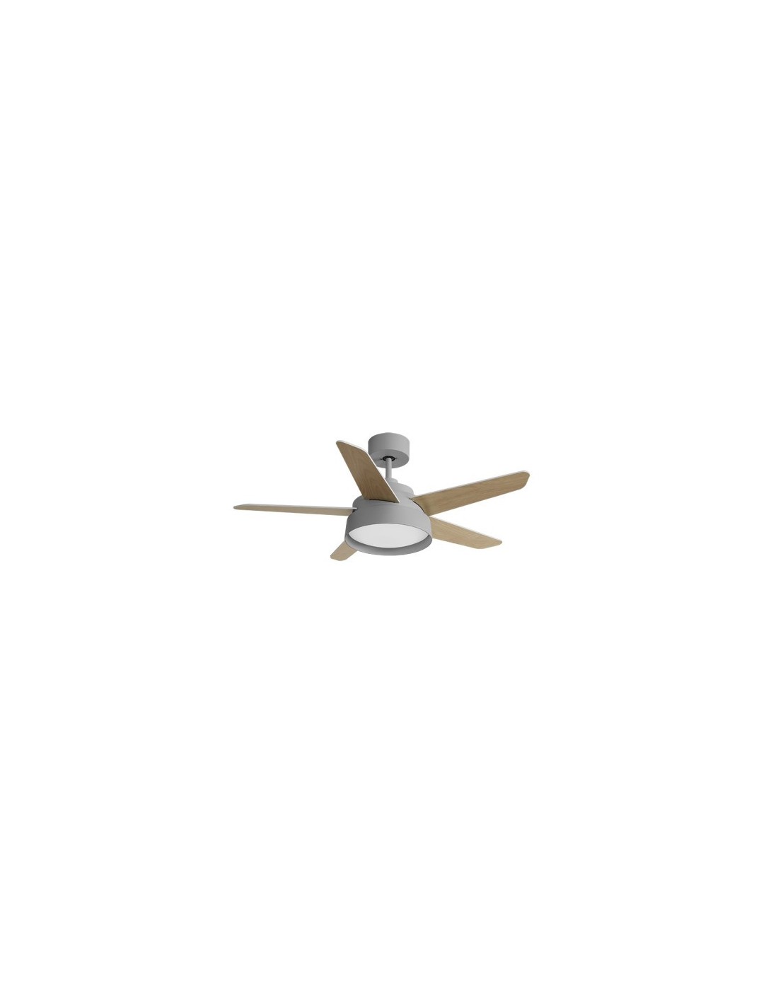 Ventilador de la serie LEBECHE realizado en metal, MDF y cristal, en color Gris con CINCO aspas REVERSIBLES de color Blanco/Haya. Tiene seis velocidades ajustables, con motor DC. Tecnología LED incorporada con una potencia de 25 watios, 2495 lúmenes y 3 TEMPERATURAS SELECCIONABLES DE LUZ( 3000-4000-6000K). Su medida es de 40/55x132x132 centímetros, viene con dos medidas de Tija lo que permite adaptarlo para distintas alturas de techo. Control de aire verano o invierno. Mando a distancia INCLUIDO con MEMORIA DE COLOR incorporada y TEMPORIZADOR 1/4/8 H. Modelo también disponible en Marrón-Nogal/Roble, Blanco-Blanco/Haya y Verde-Blanco/Haya.