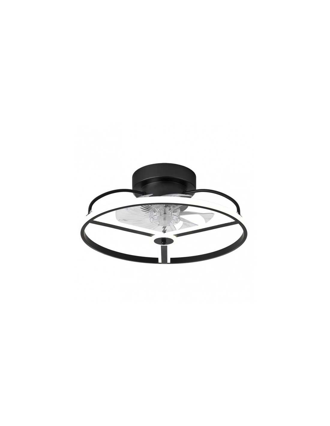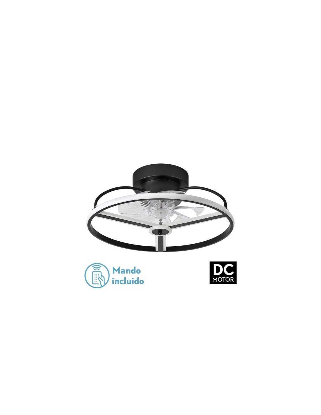 Ventilador de la serie BORA color Negro, con ocho aspas transparentes y 6 velocidades. Motor DC. Realizado en metal, ABS y policarbonato. De diseño muy moderno y original. Tecnología LED integrada con 60 watios de potencia , 5100 lúmenes, con 3 colores de luz y REGULABLE EN INTENSIDAD (3000ºk-4000ºk-6000ºk). Incluye MANDO A DISTANCIA, con MEMORIA DE COLOR incorporada y TEMPORIZADOR 2/4 H. Sus dimensiones son 21x50x50 centímetros. En esta serie, disponibles en color negro, blanco y dorado.
