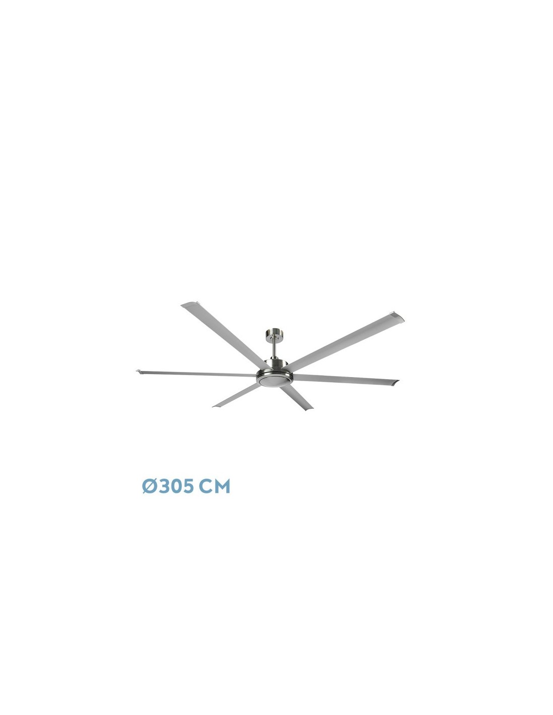 Ventilador DC de la serie SANSON sin luz incorporada, realizado en metal y aluminio, en color NIQUEL con seis aspas en color PLATA. Tiene seis velocidades ajustables con motor DC y una potencia de 55 watios. Ventilador de gran tamaño con aspas en aluminio, ideal para locales, oficinas, salones y estancias abiertas, con un diseño muy moderno y elegante, tomando parte en la decoración de su hogar o trabajo. Tiene unas dimensiones de 47/60x305x305 centímetros, incluye dos medidas de TIJA lo que permite instalarlo a distintas alturas de techo. Control de aire verano o invierno. Mando a distancia INCLUIDO y TEMPORIZADOR que permite programar para que el ventilador se apague automáticamente a las 1/2/4/8 horas, lo que conlleva un gran ahorro de energía. Modelo disponible en dos tamaños y en en los colores níquel/plata y negro.