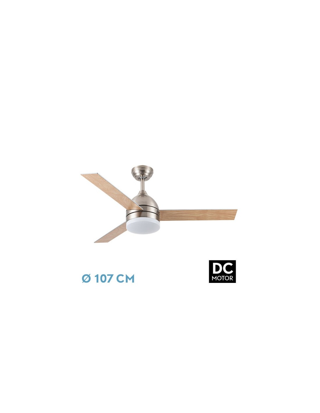 Ventilador DC LEGIO 26W NIQUEL 3ASPAS PLATA/Haya