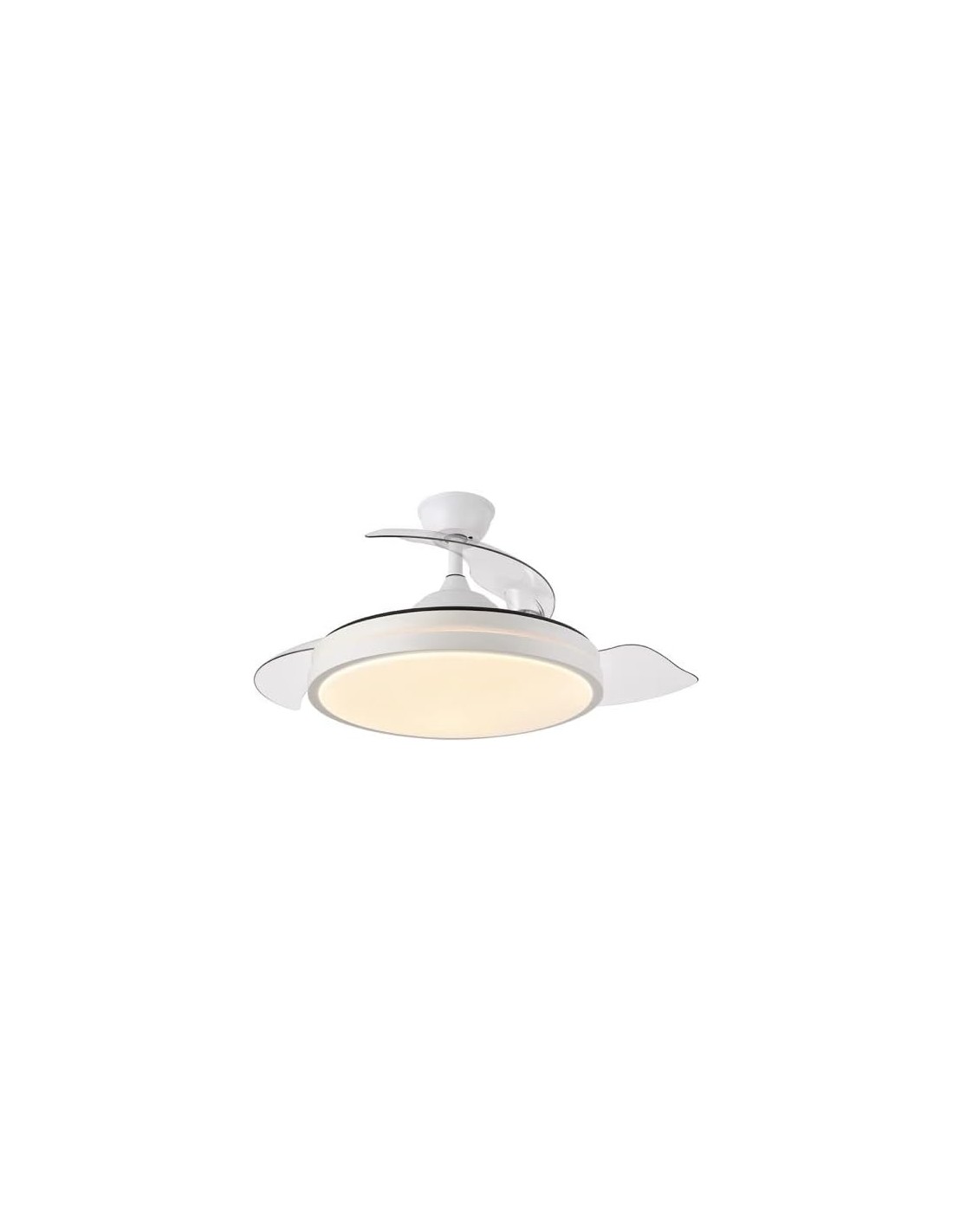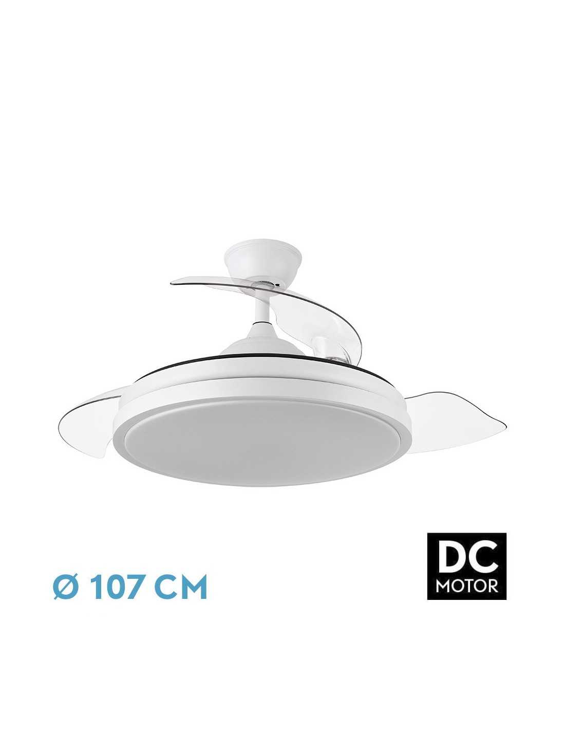 El Ventilador DC Escorpion 59W Blanco con 3 aspas desplegables es una solución innovadora y multifuncional que combina un diseño moderno y elegante con tecnología avanzada para iluminación y ventilación. Este ventilador está fabricado en metal, policarbonato y ABS, lo que garantiza su durabilidad y resistencia. Su acabado en color blanco y sus aspas transparentes de ABS le permiten adaptarse perfectamente tanto a decoraciones modernas como clásicas.