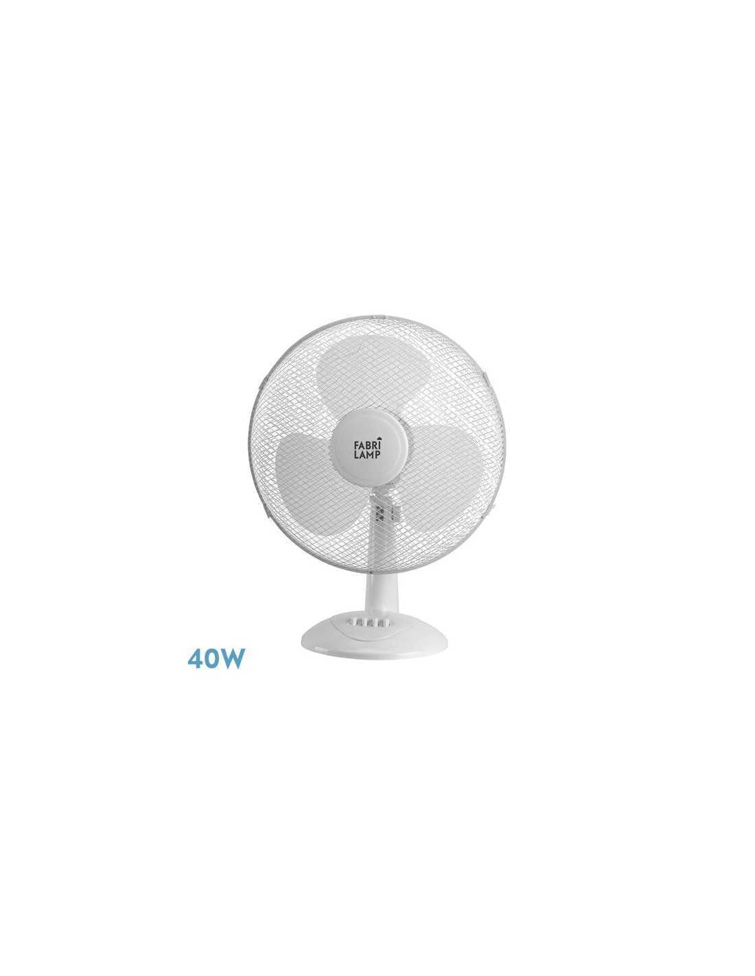 Ventilador de sobremesa de la serie CAPE grande, realizado en metal y policarbonato, de color Blanco con tres aspas y tres velocidades. Motor AC. Cabezal con dos posiciones, fijo y rotatorio, también oscilante, pudiendo redirigir el aire a la zona que desee. Tiene una potencia de 40 watios y una medida de 53X43X25 centímetros.