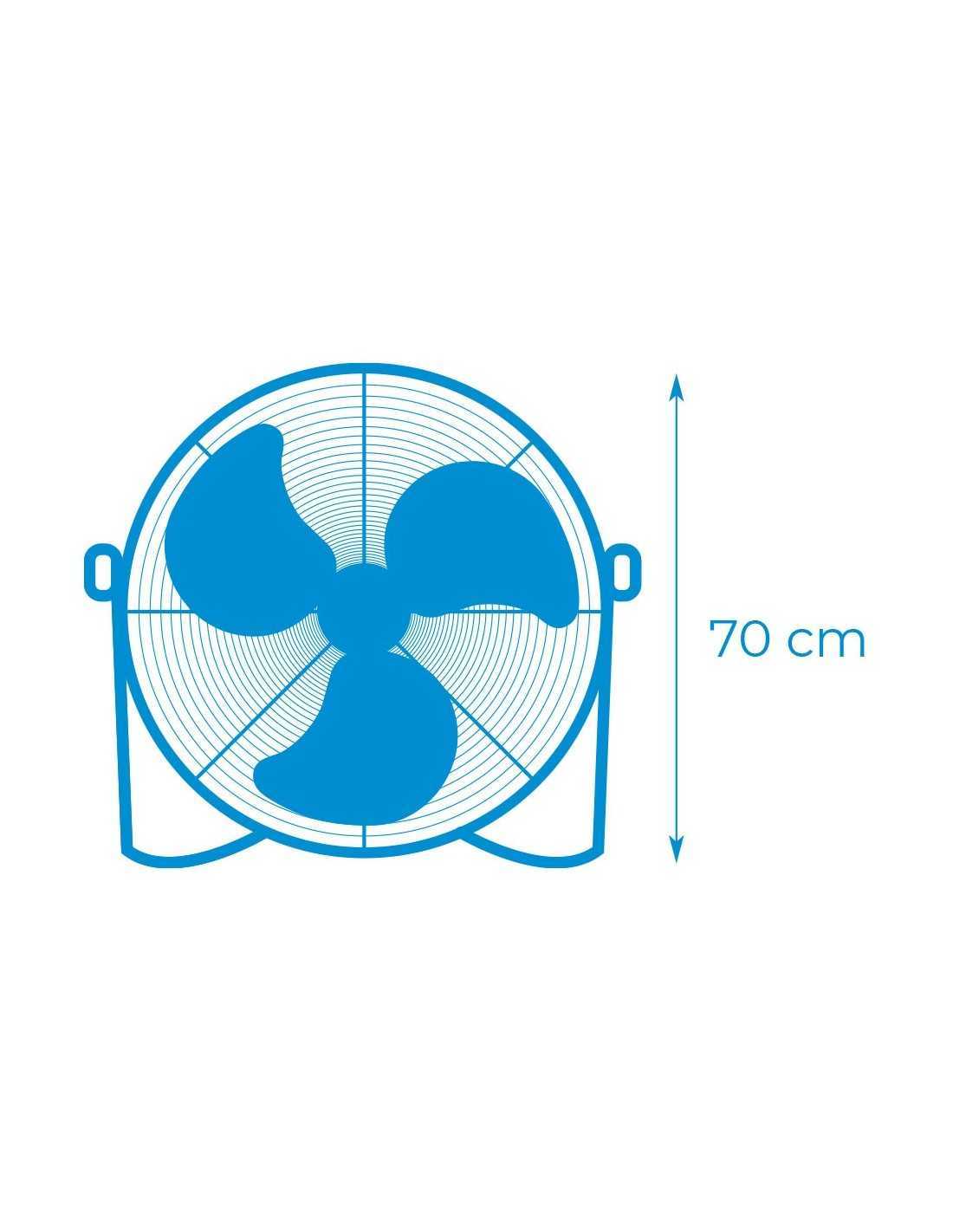 Este ventilador de suelo está diseñado para ofrecer una excelente circulación del aire en ambientes amplios. Su motor de 180W y sus aspas de 60 cm permiten cubrir grandes superficies, lo que lo hace perfecto para almacenes, fábricas, talleres y oficinas. La base con ruedas facilita el traslado del ventilador, mientras que su construcción duradera asegura un uso prolongado sin pérdida de eficiencia.